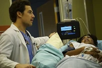 In an empty hallway, she arrives just in time to see Ben deliver a baby. There's a lot of blood and Andrew is performing CPR on the mother. She asks what happened. He replies she has to help.