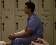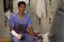 Vik worked on David Roman, who came into the ER after trying to cut off his hand because he believed he was sinning by masturbating often. Vik made a couple jokes at his expense. ("Personal Jesus")