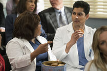 After his return, as promised, he had to stay by Bailey's side. When Matthew Taylor came in after a car accident, he helped operate on him to remove his spleen. When he learned that April was also in a car accident and it wasn't looking good, he was upset because he said he liked April. ("Cold as Ice")