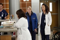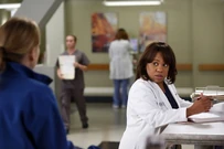 Alana is in a meeting with the attendings, and she says she's impressed by what she's seen. As she starts talking about Alex's African program, Cristina gets up. "You cannot cut that program! I'm sorry, but these children, these little orphans, we are the only hope they have. Many of them have rare disorders that most Western doctors rarely have the opportunity to treat and if you stop the program, I will never have that chance again!" she says. The other doctors give her a strange look. "They. They will never get that chance again. Precious children," she corrects herself. Alana says she has no intention of cutting the program, as that kind of positive visibility is golden for the hospital. She then suggests closing the ER. The doctors object, but Alana says that the ER is not bringing in the money and it's hemorrhaging resources. "This is ridiculous! You can't close the ER. You went to med school, you have ask yourself," Derek starts to object, but he's interrupted by Bailey. "Do you have a better idea? Because the way I see it, this woman is trying to keep the hospital from closing, in which case there'd be no patients, we'd have no jobs, and some of us don't have a few million to fall back on. So unless you have a better idea, why don't you just sit there and listen to what she has to say?" Bailey says. While the other doctors are taken aback, Alana continues her briefing.