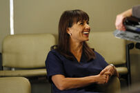 Stephanie is covering the swamped ER and she asks April to help. As Stephanie doesn't know what bed a patient with shortness of breath is in, April tells her she'll learn her how to cover the pit. They apologize to the patient, who turns out not to be patient: it's the physician advisor, who wanted to know how long it'd take before someone pulled out a stethoscope. She asks them to point her towards Owen.