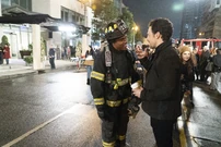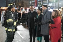 All the guests are out on the street. Catherine reminds Richard she didn't want a party. Ben announces that the building is cleared for re-entry except for the penthouse level. The fumes are still pretty bad up there. It should air out for a few days. Ben then tells Jackson they found plastic in the oven, which classically leads to a lot of smoke but no real fire. Jackson wonders who put plastic in the oven. Meredith stays quiet.