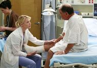 Otis, 61, was brought into the hospital with a swollen ankle. Callie diagnosed a hairline fracture, so his ankle was casted. His knee had light swelling, so Callie had Izzie tap the fluid and told her to let her know if it was positive. Izzie believed that it was a medical mystery as he was found unconscious, so she ran several tests, but they revealed nothing except for a relatively minor flu. She suggested that he get a lot of fluids and rest.