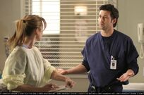 Behind a curtain, Alex and Meredith fight over the patient but after a while of them arguing, the patient, Viper, pulls back the curtain and asks if they can just take the spokes out so that he can win his race. Meredith tells him that they have to run some tests first but Alex just takes them out telling Meredith that its a superficial wound, not surgical. Alex leaves Meredith to sew him up.
