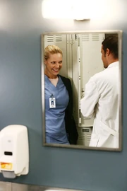 Izzie's checking up on Pamela, who asks if she can still have "episodes" now that the surgery's over. Izzie says even better: she'll be able to have orgasms. Izzie and Alex lock eyes through the window.